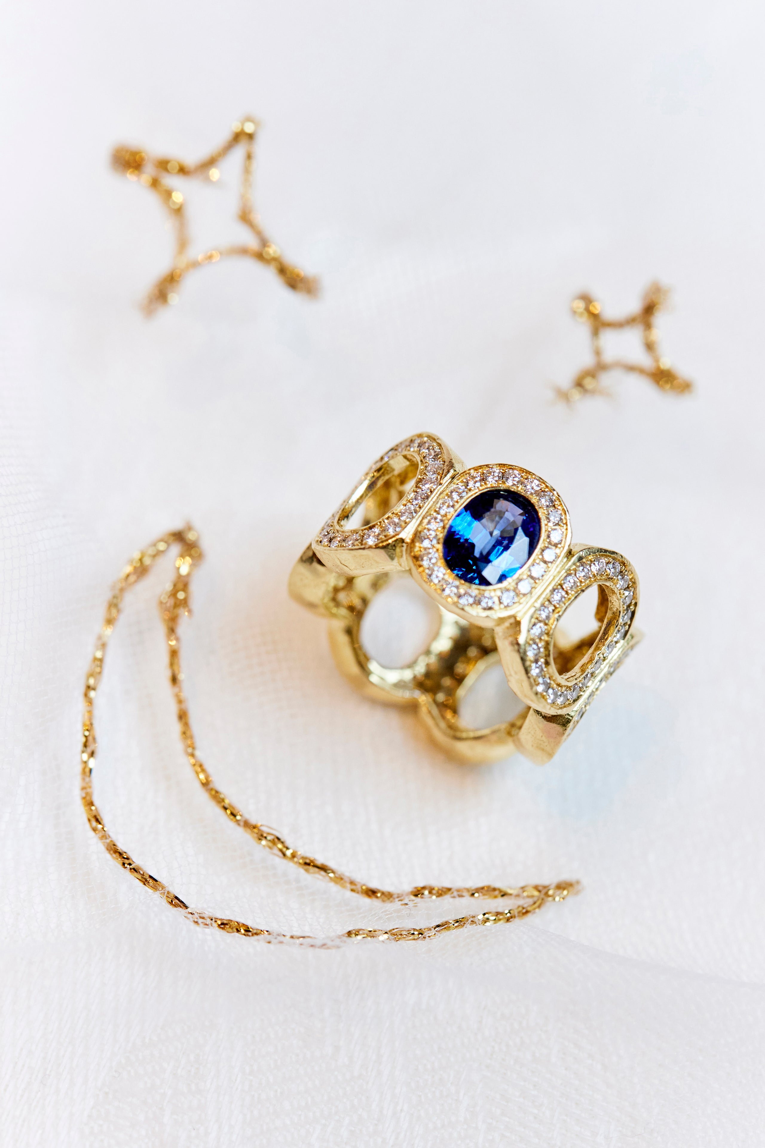 En parallèle de ses collections, Aude Lechère propose un service de création sur mesure. Chaque pièce naît d’un échange avec la cliente, à partir de son histoire. Il est aussi possible de transformer un bijou existant en réutilisant l’or et les pierres.